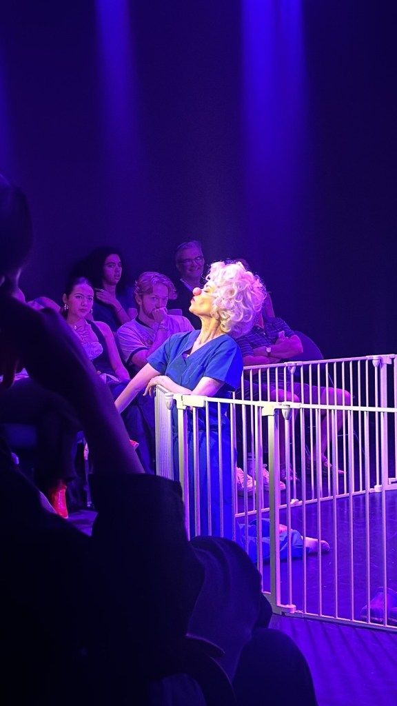 “…This unadorned Bella has no wig, no nose, no blue scrubs, and no high-pitched voice. She finally tells the truth about herself and apparently wins her own freedom in that way, dancing around to an instrumental version of “The Sound of Silence” as she sheds the role she’d been forcing upon herself. This is the best, most intriguing version of Bella, though the audience unfortunately sees very little of it. Nevertheless, the show succeeds in being a refreshingly offbeat, charming showcase for Noble’s undeniable talents.” – Stage Raw (full review)